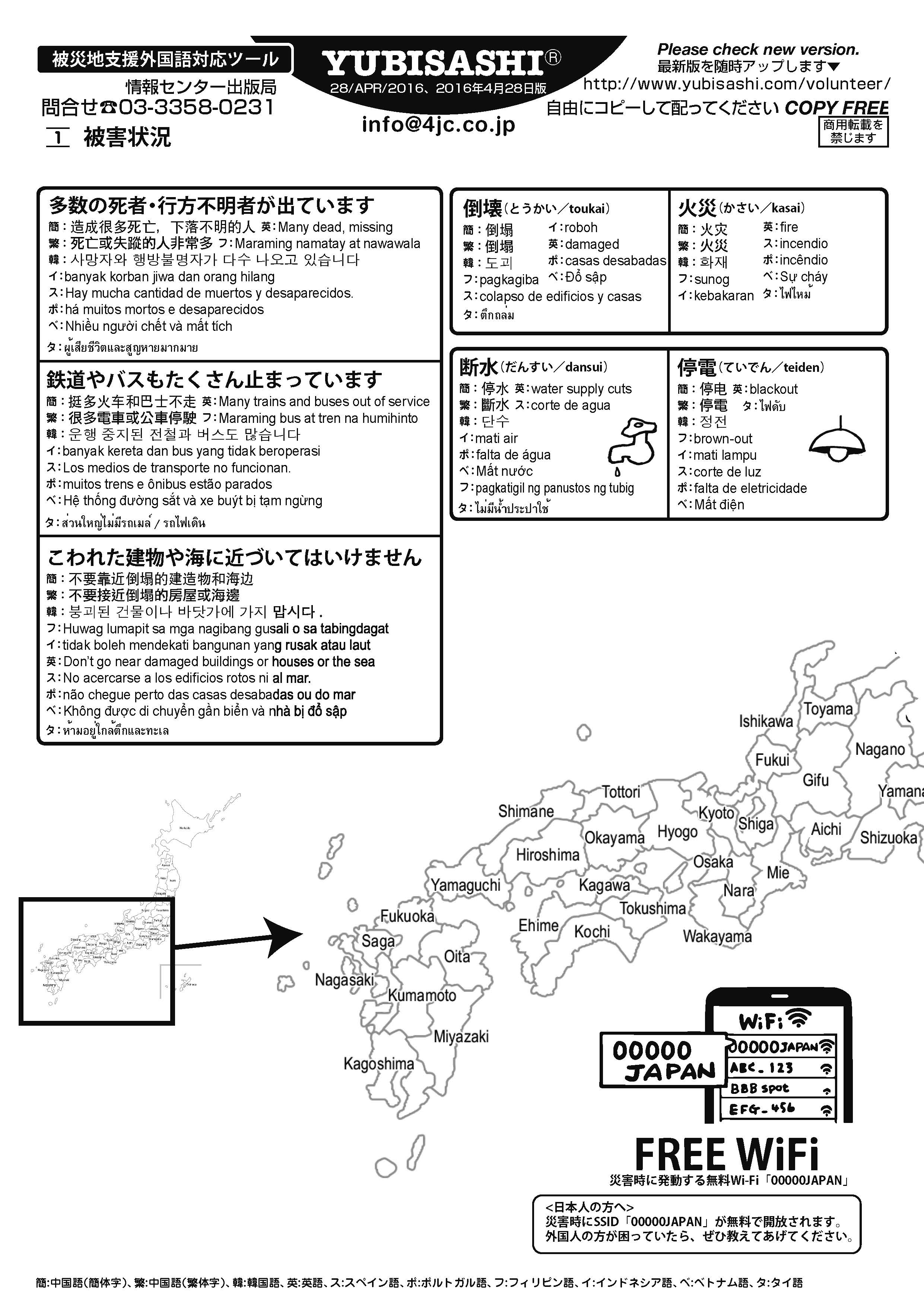 被災地での外国人の方との会話用のツールを下記ページで無料公開しております。