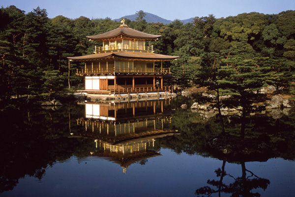 Kinkaku-ji Temple (the Temple of the Golden Pavilion) is a Shariden (Buddhist relic hall) that was originally built in 1397 by the third Ashikaga Shogun, Yoshimitsu, as a retirement villa, the Kitayama Sanso. The pavilion is clad partly in gold leaf, hence the name. Although the Kitayama Sanso was destroyed after Yoshimitsu’s death, some structures, including the pavilion were left. More than half of the precincts, which have an area of around 132,000㎡, is used as